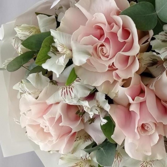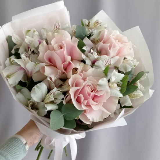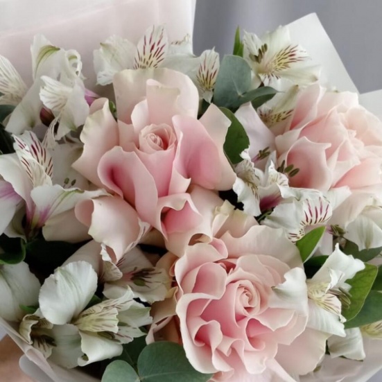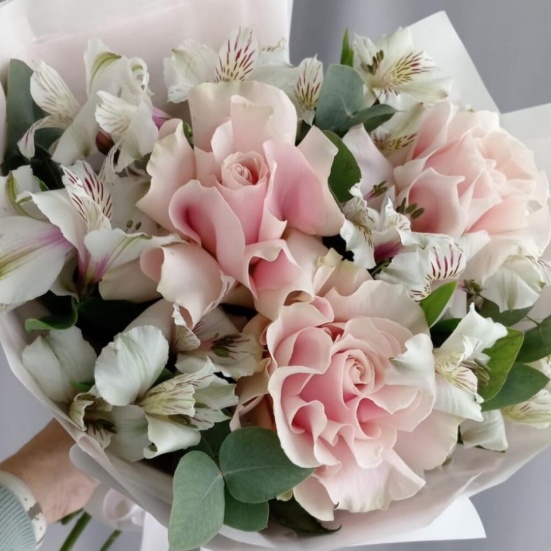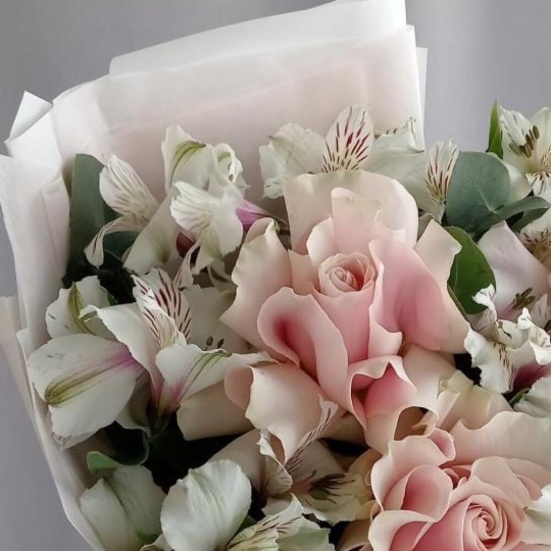 Букет из 3 французских роз и Альстромерии в Барабинске