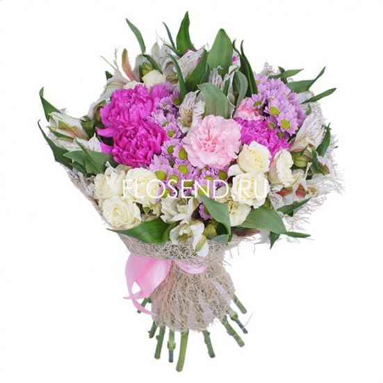 Букет из альстромерии и гвоздики и хризантемы