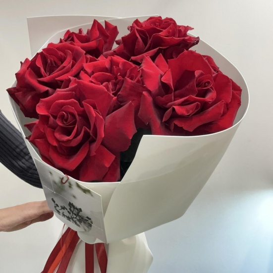 Букет из 7 ажурных красных роз в Барабинске